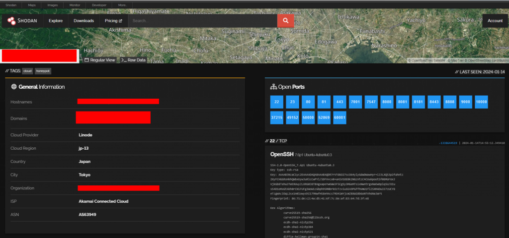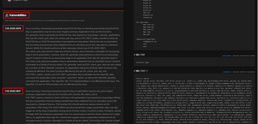 En el caso de Shodan.io, la herramienta recopila y muestra información sobre los dispositivos, como su dirección IP, su ubicación, su fabricante, su modelo, su versión de firmware, su configuración, sus servicios y sus puertos.